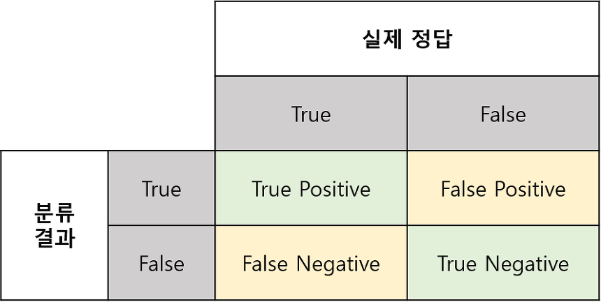 예를들면, Precision의 경우 True로 예측/분류했지만 실제 False인 경우의 비율을 알 수 있는데,